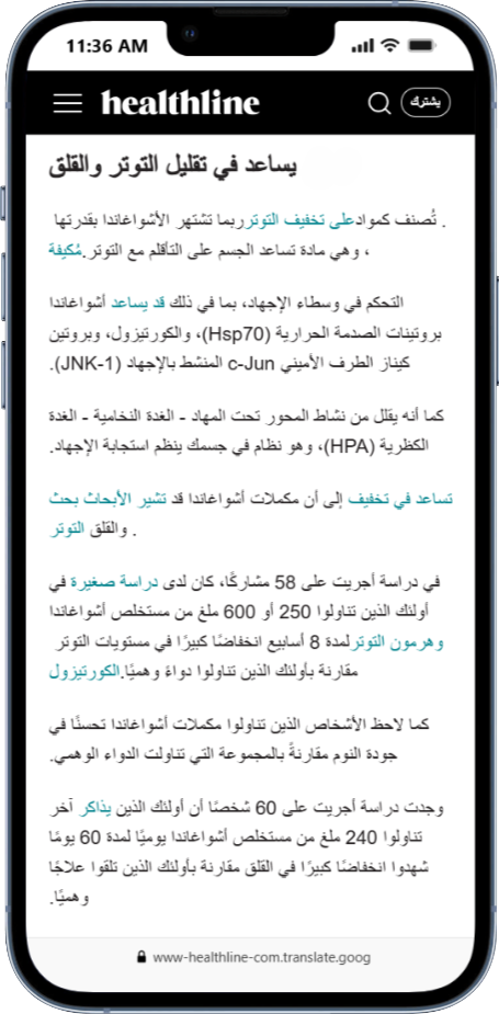 يخدم كـ Adaptogen (مكيّف طبيعي) يعاون مخك يتأقلم مع الضغط، ينحي العصبية الزايدة، ويقوي الذاكرة والتركيز.